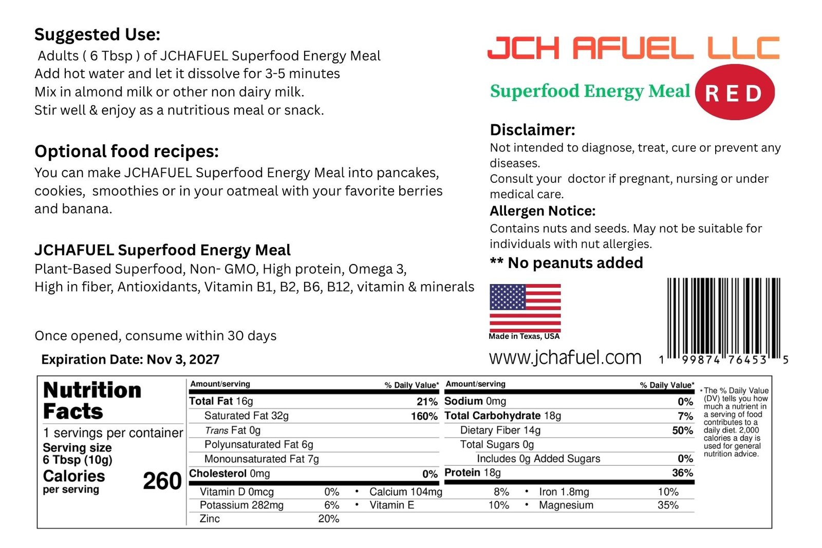 JCH AFUEL Products, UncategorizedAFUEL 14 Days Red SuperFood Energy Meal